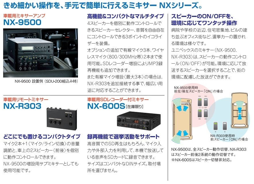 トップ > 拡声器 > 車載用アンプ > ユニペックス UNI-PEX > 【送料無料】拡声器 ユニペックス 車載用ミキサーアンプ NX-9500