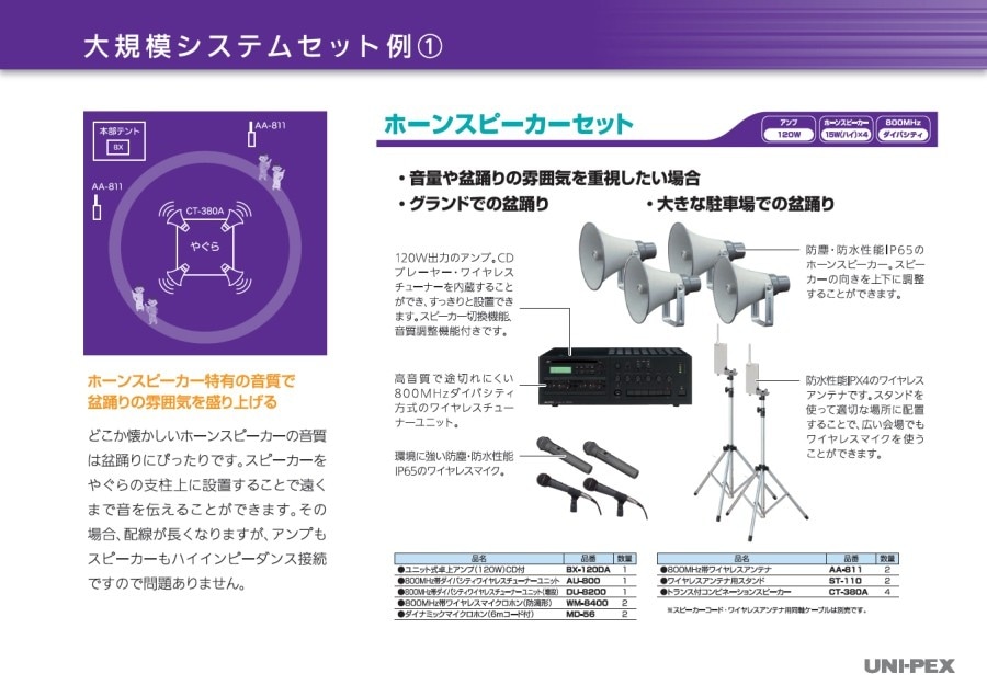 トップ > 拡声器 > ワイヤレスチューナー・ユニット > チューナー増設セット > 【送料無料】ユニペックス お祭り向け 大規模システムセット(1)